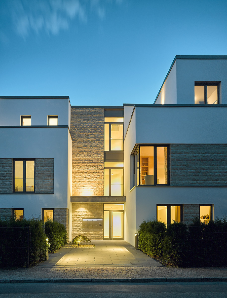 Der moderne und attraktive Neubau TKW|113 ist mit seiner Gradlinigkeit an den Bauhausstil angelehnt und steht auf einem ca. 1.400 m² großen Grundstück. Von der Strassenseite aus begeistert das Gebäude durch edle Natursteinoptik, die sich in ausgestellten Flächen, sowie über die gesamte Höhe des Eingangsbereiches darbietet. Das Treppenhaus folgt der modernen Linie des Gebäudes. Große Fensterfronten und hohe Decken versprechen in allen Wohnungen viel Licht und sehr angenehme Wohnqualität.
